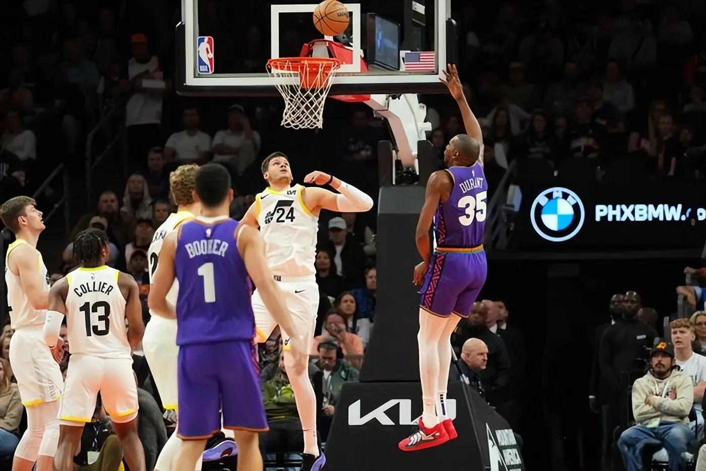 首局比赛太阳在杜兰特的带领下打出一波14-3的完美开局,本以为太阳今天面对爵士难得的要立起来了,谁知爵士替补群突然爆发,首节结束太阳31-27仅仅领先4分。次节比赛处于交易流言的比尔上来连续得分,布克也发挥出自己得分手的能力,两人携手打了爵士一波11-0的攻击波帮助太阳半场结束65-54领先11分。