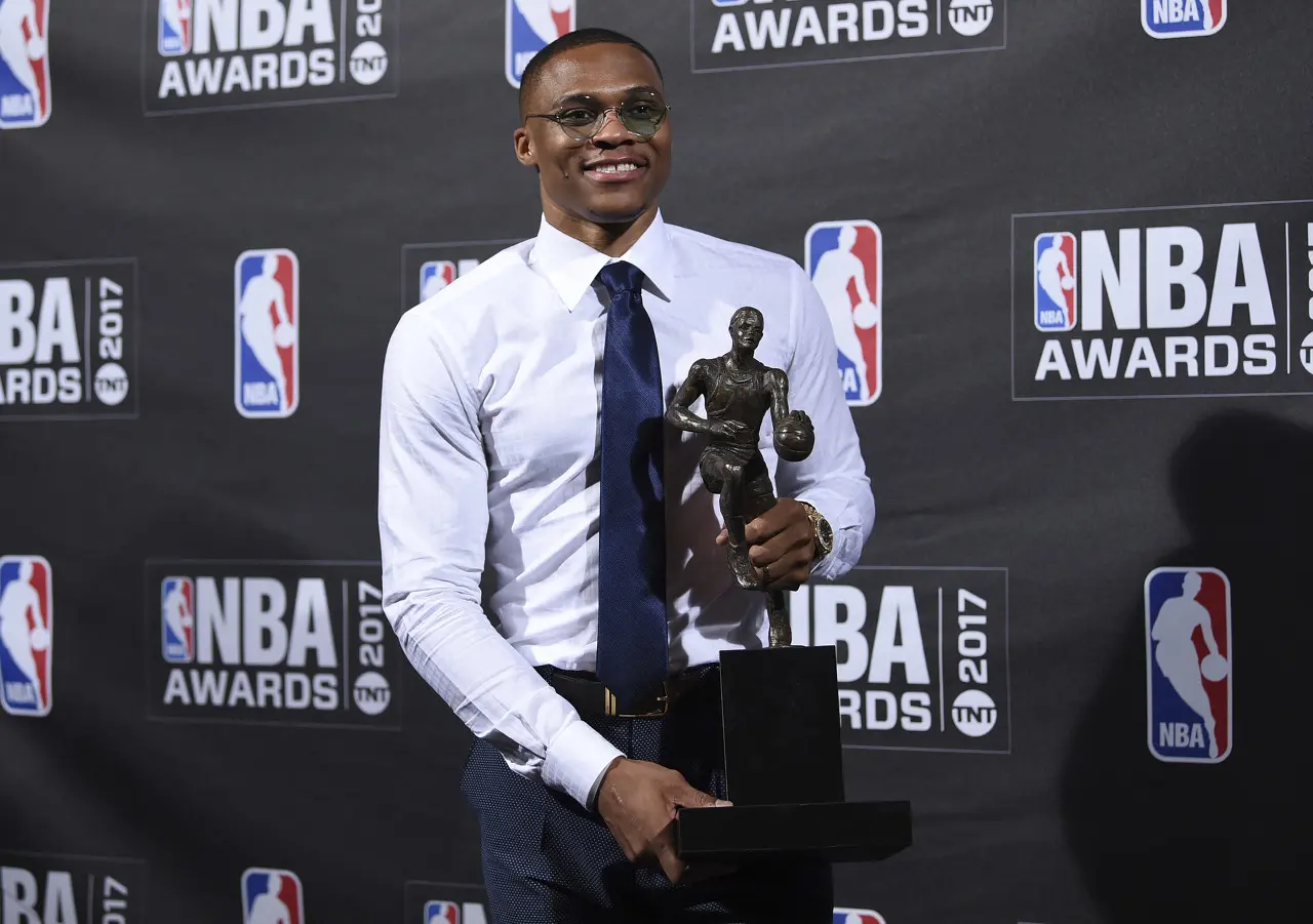 16-17赛季 雷霆 81场42次 常规赛MVP 赛季场均31.6分10.7板10.4助三双